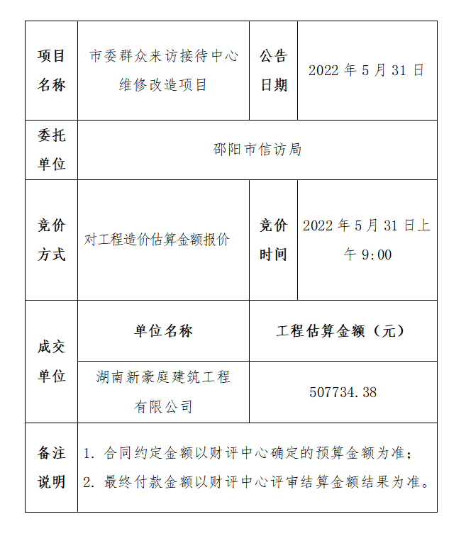 邵阳市365bet在线注册_365bet网上手机投注_365被限制如何解决市委群众来访接待中心维修改造项目公开竞价结果公告